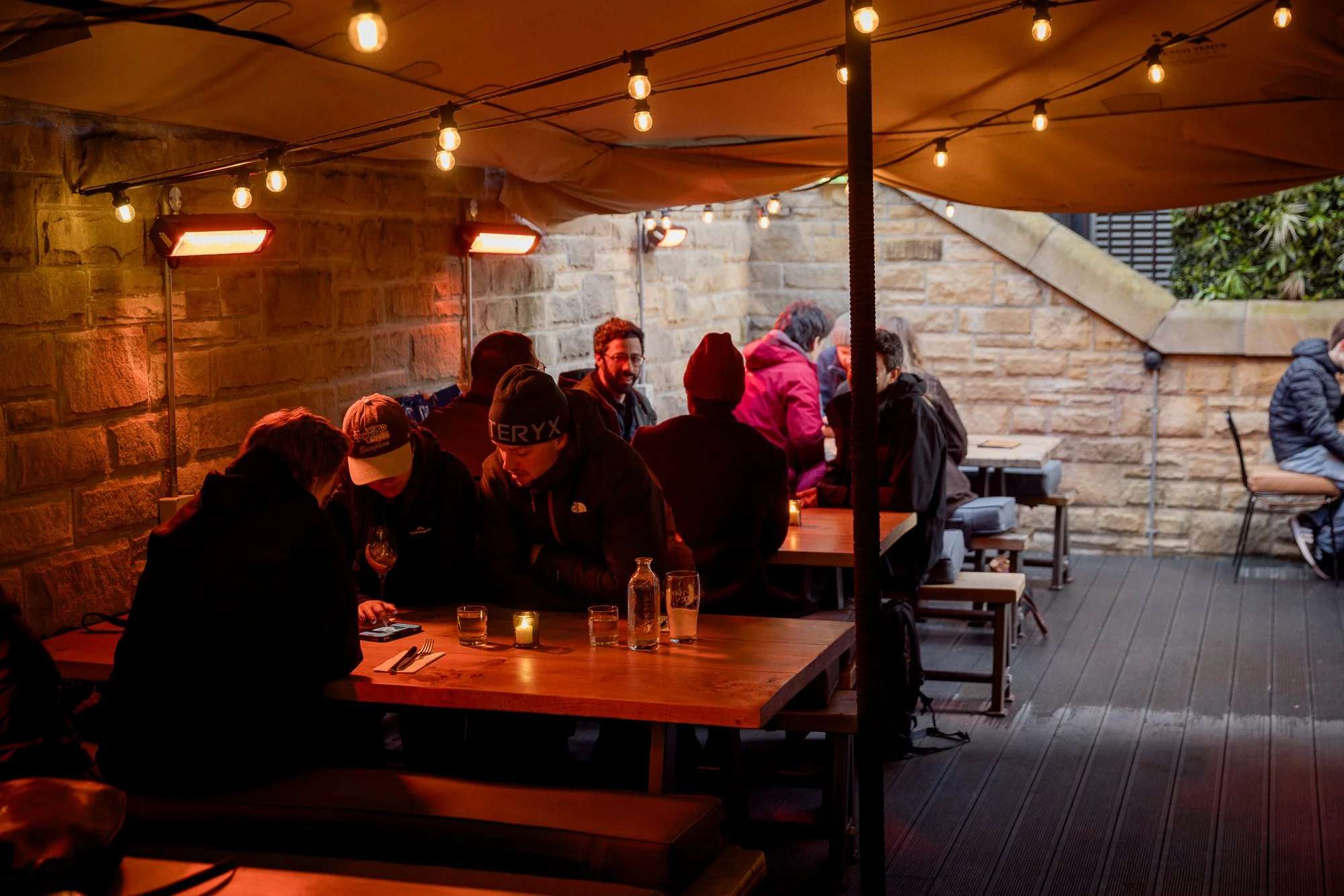 Fully covered and equipped with heaters and cosy blankets, it’s perfect for relaxed drinks or alfresco dining year‑round — from sunny afternoons to snug evenings.